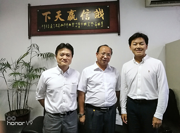 廣州艾若多自動化控制設(shè)備有限公司吳經(jīng)理(中)跟日本美和鎖業(yè)株式會社杉田先生(左).石田先生(右)合影留念:
